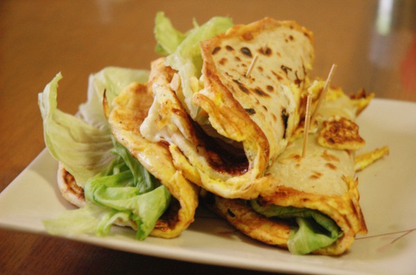 煎饼果子的营养相对合理。制作煎饼的面糊小麦粉、绿豆粉、小米粉、荞麦粉等,符合主食多样化原则。再打个鸡蛋在上面,优质蛋白质也有了。吃煎饼果子时,最好不要薄脆,因为经过油炸,其脂肪含量高,铝也可能超标。煎饼做好后再刷上大酱,撒上芝麻、香菜和葱花,加两大片生菜叶,相对来说,是比较健康营养的早餐。